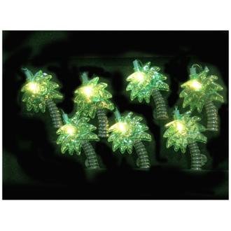 Add a playful tropical accent to your home, indoors or out, with this set of palm tree party lights. Each light features a detailed palm lighted from within by a small fixture. Indoor/outdoor use. 10-light string. 12" spacing between lights. 30" lead wire. Includes spare bulbs and fuses. Total length 11 1/2 feet.