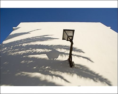 - Image Description: Shadow of palm tree on white wall. Vejer de la Frontera, Andalucia, Spain, Europe