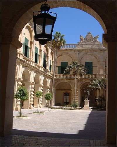 - Image Description: A view through to the courtyard of the Grand Masters Palace off Republic Street in Valletta on Malta